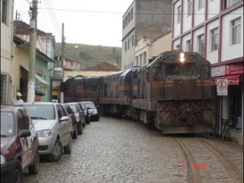 BEM VINDO A RECREIO / CIDADE DO MENINO DEUS . Trens de minério com pelo menos três locomotivas diesel da FCA passam pela linha nas ruas da cidade de Recreio nas Minas Gerais. Paisagem não atípica de várias cidades por onde a velha Leopoldina construiu suas linhas. "Tudo isto no meio da rua, disputando espaço com pessoas, bicicletas, motocicletas e carros, um perigo danado (e um convívio pacífico, por mais incrível que possa parecer)"